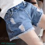 半ズボン ハーフパンツ ショート デニム クラッシュ ダメージ 韓国系子供服 キッズ 女の子 ジーンズ ボトムス 夏新作 ガールズ 女児 通学 通園 100-160cm