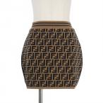 未使用品 フェンディ FENDI GONNA FF KNIT キッズ ミニスカート ニット ズッカ柄 総柄 12A 茶 ブラウン レディース