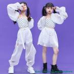 キッズ ダンス衣装 セットアップ ガールズ ヒップホップ かっこいい 派手 キッズダンス衣装 シースルー へそ出し トップス スカート パンツ 韓国 K-POP 白