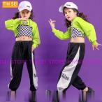 パーカー ダンス 衣装 ヒップホップ ダンス衣装 キッズ ジャズダンス衣装 トップス チェック サルエルパンツ 長袖 タンクトップ HIPHOP ダンス衣装 セットアップ