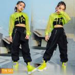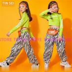 上下セット ゼブラストライプ 蛍光色 緑 サルエルパンツ 長袖 ジャズダンス衣装 タンクトップ キッズ ダンス衣装 ヒップホップ 子供 ダンス ロングパンツ