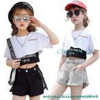 キッズ ダンス衣装 へそ出し 練習着 黒 白 タンクトップ ショート丈Tシャツ 半ズボン ヒップホップ 子供 ダンス 女の子 半袖 イベント 発表会 演出 韓国