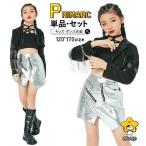 キッズ ダンス衣装 へそ出し タンクトップ 星 ジャケット シルバー スカート 黒 ヒップホップ かっこいい チアガール 女の子 HIPHOP ジャズダンス 子供 ステー