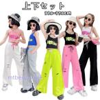 キッズ ダンス衣装 タンクトップ パンツ へそ出し ヒップホップ ズボン ロング丈 ジャズダンス ステージ衣装 応援団 発表会 演出服 団体服 カラフル 単品販売