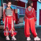 キッズ ダンス カーゴパンツ へそ出し 赤 黒 ヒップホップ 女の子 トップス シャツ タンクトップ パンツ HIPHOP ジャズダンス 子供 ステージ衣装 韓国 団体服