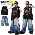 ノースリーブ タンクトップ ダンス衣装 キッズ ヒップホップ ストリート 男の子 ブラック 無袖 トップス デニムパンツ ダメージジーンズ セットアップ ジャスダ