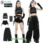 キッズ ダンス衣装 へそ出し タンクトップ シャツ 黒 トップス ショートパンツ セットアップ ヒップホップ ストリートダンス 韓国 女の子 練習着 発表会 演出服
