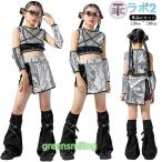 キッズダンス衣装 へそ出し トップス スパンコール セットアップ ヒップホップ パンツ ベスト 腕飾り 女の子 シルバー ブラック 袖なし きらきら チアガール ガ