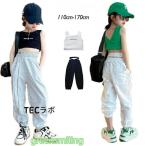 キッズ ダンス衣装 セットアップ へそ出し タンクトップ 黒 パンツ ショート丈 トップス ヒップホップ 女の子 ロングパンツ 韓国 k-pop 衣装 子供 演出服 袖なし