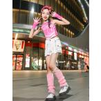 キッズダンス衣装 セットアップ ピンクTシャツ ズボン へそ出し タンクトップ 半袖トップス スカート ヒップホップ チアガール ジャズダンス 女の子 JAZZ