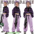 チェック 紫 jazz キッズ ダンス衣装 セットアップ 女の子 長袖 ショーシャツ タンクトップ トップス パンツ カーゴパンツ チアガール ポッピング ロッキング ジ