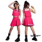 キッズダンス衣装 セットアップ チアガール トップス スカート タンクトップ 4点セット ピンク バラ色 女の子 ダンス衣装 セットアップ ヒップホップ 子供服 ジ