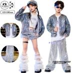 銀色 スパンコール ダンス衣装 子供服 キッズダンス 女の子 コート 白 タンクトップ へそ出し キラキラ 短パン チュール ルーズソックス 男の子 黒 カーゴ 革パ