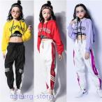 ヒップホップ ダンス衣装 セットアップ ダンスパンツ キッズダンス衣装 ヒップホップ ロングパンツ ガールズ ダンス衣装 キッズ 韓国 派手 HIPHOPダンス衣装