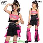 【クーポン利用で10%OFF】へそ出し トップス k-pop 衣装 キッズダンス キッズ ダンス パンツ 短パンツ 黒 タンクトップ かっこいい ワイドパンツ ヒップ 韓国 レッグカバー アイドル 女の子 セットアップ