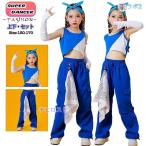 青 k-pop 衣装 キッズ ダンス衣装 へそ出し ブルー パンツ シャツ タンクトップ セットアップ ヒップホップ チアガール ジャズダンス パンツ 女の子 子供ダンス
