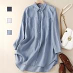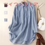 シャツブラウス チュニック トップス レディース シャツ ブラウス 通勤通学 麻綿混紡 後丈長 長袖
