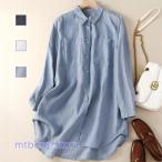 シャツブラウス チュニック トップス レディース シャツ ブラウス 通勤通学 麻綿混紡 後丈長 長袖
