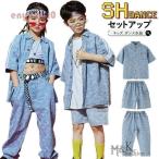キッズ ダンス衣装 セットアップ デニム トップス シャツ デニムパンツ 半袖 男女兼用 練習着 ストリートダンス jazz 韓国ジャズダンス 演出服 団体