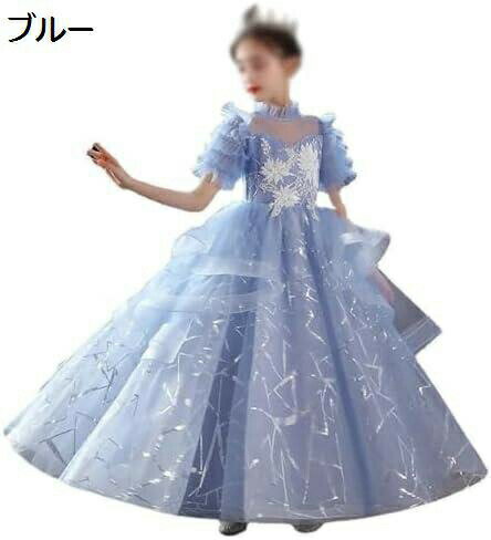 子供ドレス ピアノ発表会 青 半袖 キッズドレス 披露宴 ロングドレス 入園式 子どもドレス 結婚式 ウエディングドレス 卒業式 パーティードレス 二次会