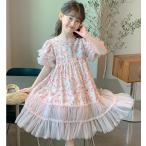 チュール ワンピース キッズ ドレス 半袖 子供ドレス チュールワンピ 女の子 子供服 こども服 子ども服 子ども 花柄 フレア 袖フリル 夏 ピアノ発表会