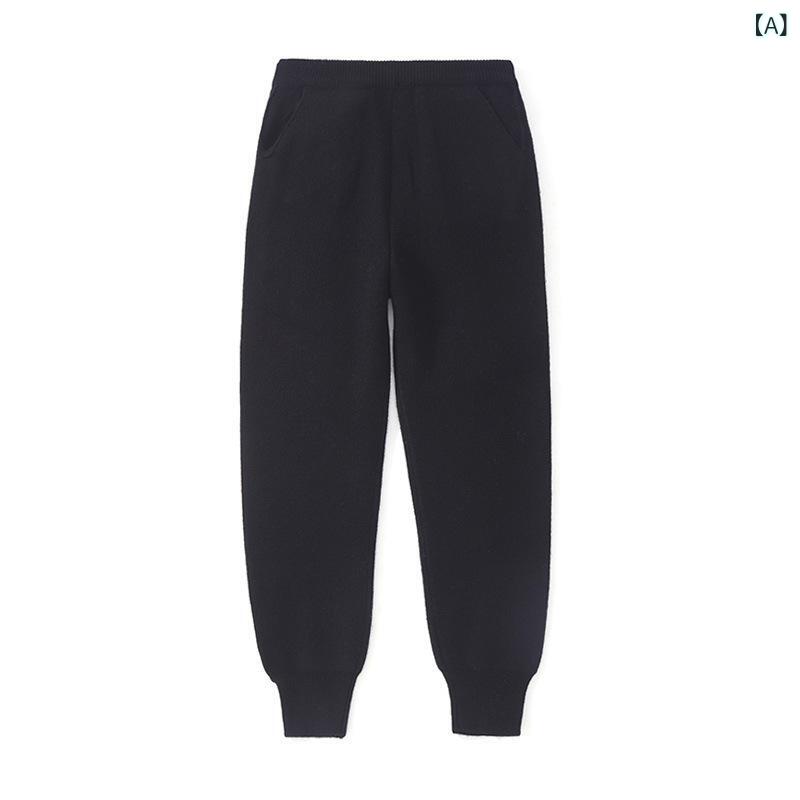 パンツ キッズ ジュニア 男女兼用 羊毛 ピュアウール ニットパンツ 長ズボン ボトムス シンプル カジュアル ゆったり 普段使い 通学 お出かけ 秋冬 暖かい 防寒 柔軟 肌触り 無地 はイエスと ブラック モカブラウン