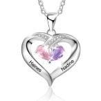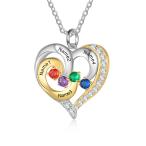 【並行輸入品】パーソナライズネックレス レディース スターリングシルバー 誕生石付き ラブハート プロミス 母ネックレス キッズネーム付き ジュ