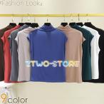 Tシャツ 無地 ハイネック カラバリ やわらか ノースリーブ トップス レディース