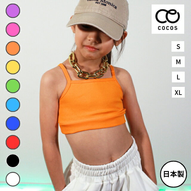 キッズ ダンス衣装 ブラトップ トップス ハーフトップ カラフル JDTJ-01[ チューブトップ インナー キャミソール綿 黒 白 赤 ピンク 青 黄色 紫 ピンク 緑 オレンジ 見せブラ 女の子 チア ヒップホップ ガールズ ジュニア ダンス ]