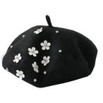【並行輸入品】Brcus キッズ ガールズ ウール フェルト フラワー ベレー帽 フレンチ アーティスト ビーニーキャップ, ブラック, Hat