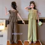 子供服 セットアップ 女の子 ジュニア 夏 上下セット 2点セット ノースリーブ ブラウス パンツ 薄手 可愛い おしゃれ キッズ 通学着 新品