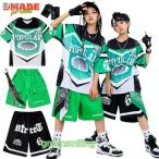 子供服 ダンス 衣装 グリーン キッズ セットアップ ヒップホップ 単品 ブラウス 半袖 パンツ ヒップホップ キッズダンス 男の子 女の子 セットアップ ストリート