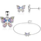 【並行輸入品】HObler バタフライシルバージュエリー3点セット ガールズ キッズジュエリー バタフライブレスレット スタッドイヤリング ペンダント