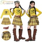 ダンス 衣装 チア セットアップ 女の子 チェック へそ出し 韓国風 K-POP キッズ ダンス 衣装 ガールズ 黄色 スカート プリーツ ヒップホップ ロック 英字 トップ