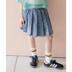 スカート ヴィンテージ加工 ストレッチ デニム ハーフ プリーツ スカート キッズ 子供服 女の子