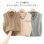 子供 キッズ ニットベスト 冬用 フォーマルベスト Vネックベスト ジュニア 春秋用 3色 袖無し ケーブル編み ウォッシャブル 通学 ユニセックス