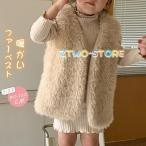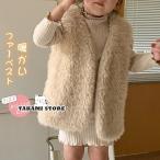 キッズ ベスト ファーベスト 女の子 ベスト ジレ 子供服 ファーカーディガン 前開き フェイクファー 春秋 冬 Vネック ノースリーブ 無地 厚手 暖かい ふわふわ
