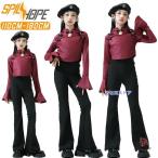 韓国 jazz ワインレッド トップス ブラック ベルボトムパンツ キッズ ダンス衣装 セットアップ 上下セット おしゃれ 女の子 かっこいい かわいい へそ出し チャ