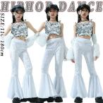 韓国 jazz シルバー キラキラ キャミソール 白 ベルボトムパンツ キッズ ダンス衣装 セットアップ 上下セット おしゃれ 女の子 かっこいい かわいい ゆったり 腕