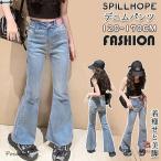 デニムパンツ 女の子 ジーンズ フレアパンツ 子供 パンタロン ベルボトム デニム 女児 スリット入り パンツ ウエストゴム ジュニア