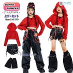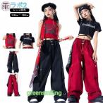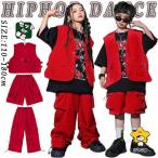 赤 ベストセット キッズ ダンス 衣装 セットアップ おしゃれ ハーフパンツ ロングパンツ カーゴパンツ 男の子 女の子 かっこいい 黒シャツ 3点セット カジュ