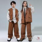 ダンス衣装 ヒップホップ セットアップ スーツコーヒー ベスト ロングパンツ 白シャツ キッズダンス衣装 ガールズ 男の子 ヒップホップ 派手 K-POP 韓国