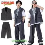 グレー スーツ キッズダンス衣装 セットアップ ヒップホップ 衣装 キッズ 子供服 男の子 女の子 スーツセット 韓国 ベスト 袖なし ズボン ロング丈 ロングパンツ