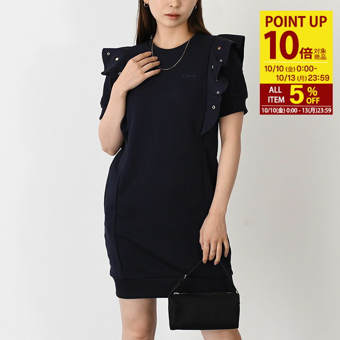 【P10倍&5%OFFクーポン】CHLOE クロエ ワンピース フレンチテリー ミニドレス C20066 キッズ レディース GIRL NAVY ネイビー PALE PINK パールピンク ロゴ パール タイト 大人もOK