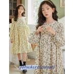 子供服 長袖ワンピース 発表会 カーキ ネイビー 春 秋 冬 ワンピース 重ね着風 韓国子供服 キッズ 女の子 花