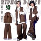 キッズ ダンス衣装 セットアップ 茶色 ブラウン 個性派 ベスト 白 スーツ ワンポイント かっこいい ゆったり 長袖 トップス ダンスパンツ サルエルパンツ ジャズ