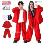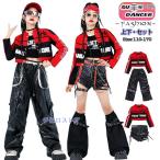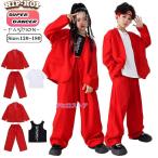 キッズ へそ出し トップス ダンス衣装 女の子 セットアップ かっこいい 赤ジャケット ヒップホップ 韓国 k-pop衣装 ワイドパンツ ジャズダンス 長袖 レザーパン