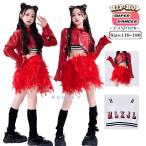 キッズ へそ出し トップス ダンス衣装 女の子 赤 セットアップ レザー トップス フェザー スカート 長袖tシャツ かっこいい 韓国 k-pop衣装 ヒップホップ ジャズ