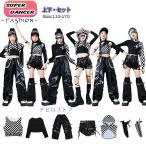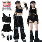 9タイプ★ カーゴパンツ 革パンツ キッズ ダンス 衣装 女の子 黒 長袖 セットアップ 格子柄 片袖 チェック柄 ブラック ワイドパンツ ゆったり ヒップホップ 子供