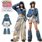 シルバートップス キラキラ キッズ ダンス衣装 へそ出し トップス 女の子 セットアップ デニムパンツ かっこいい 韓国 k-pop衣装 ヒップホップ ジャズダンス ス